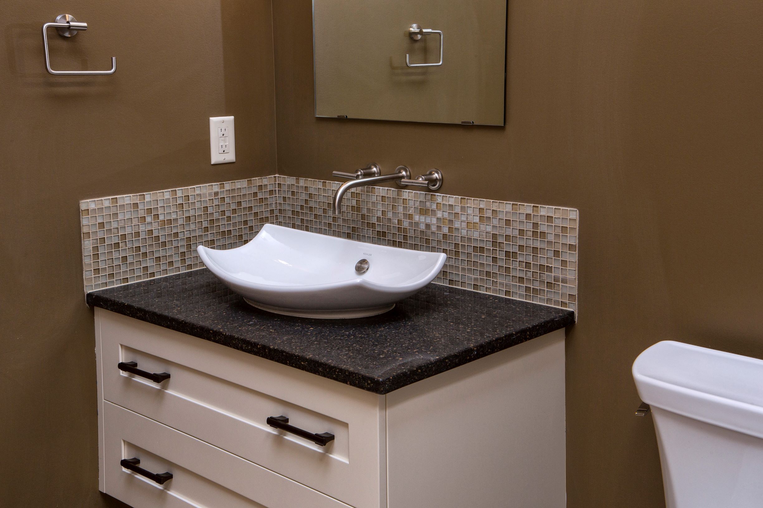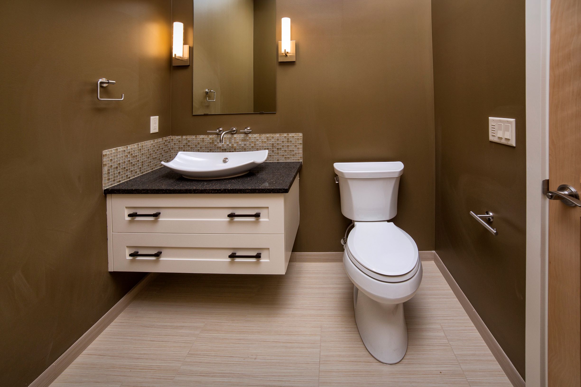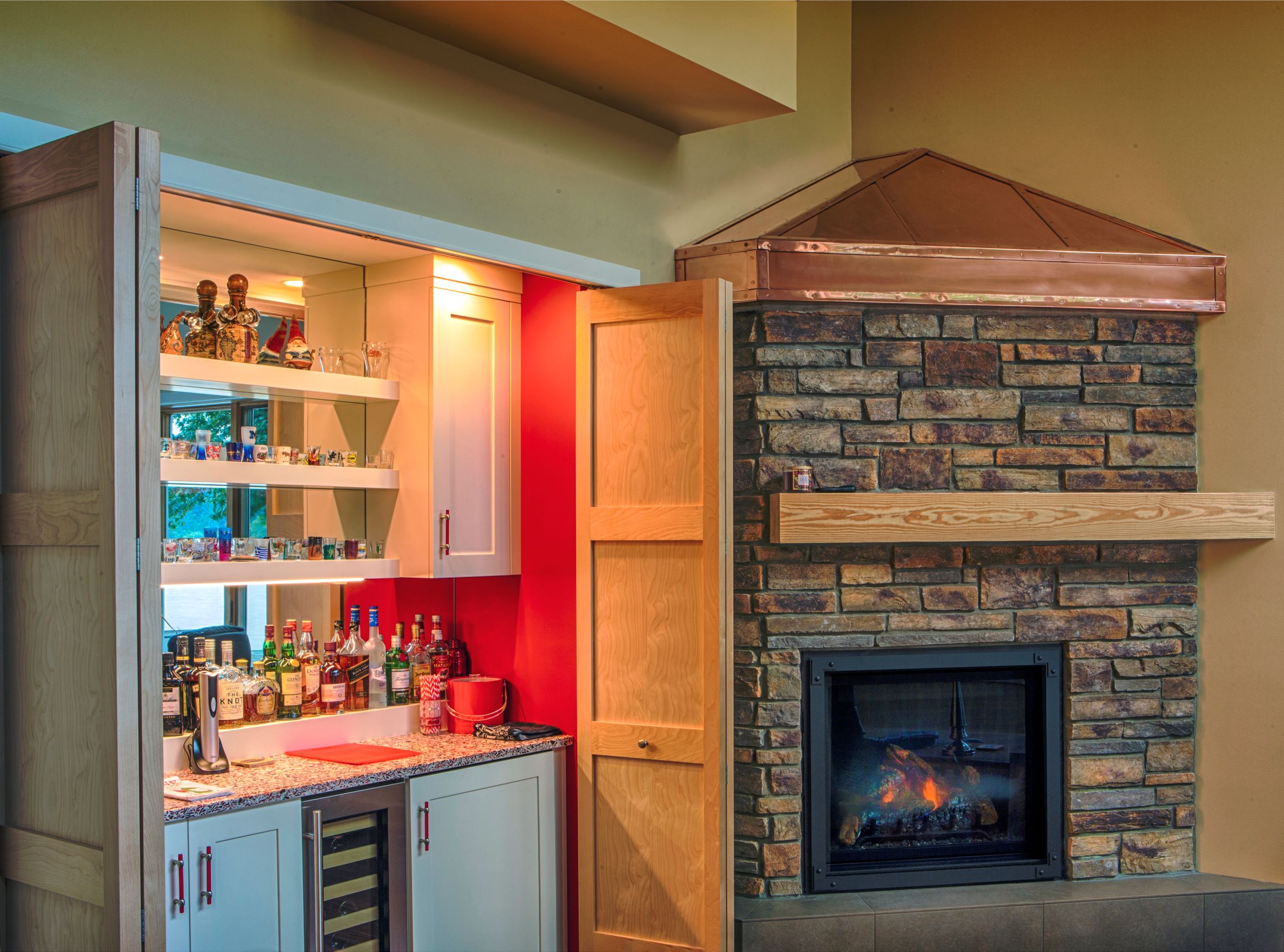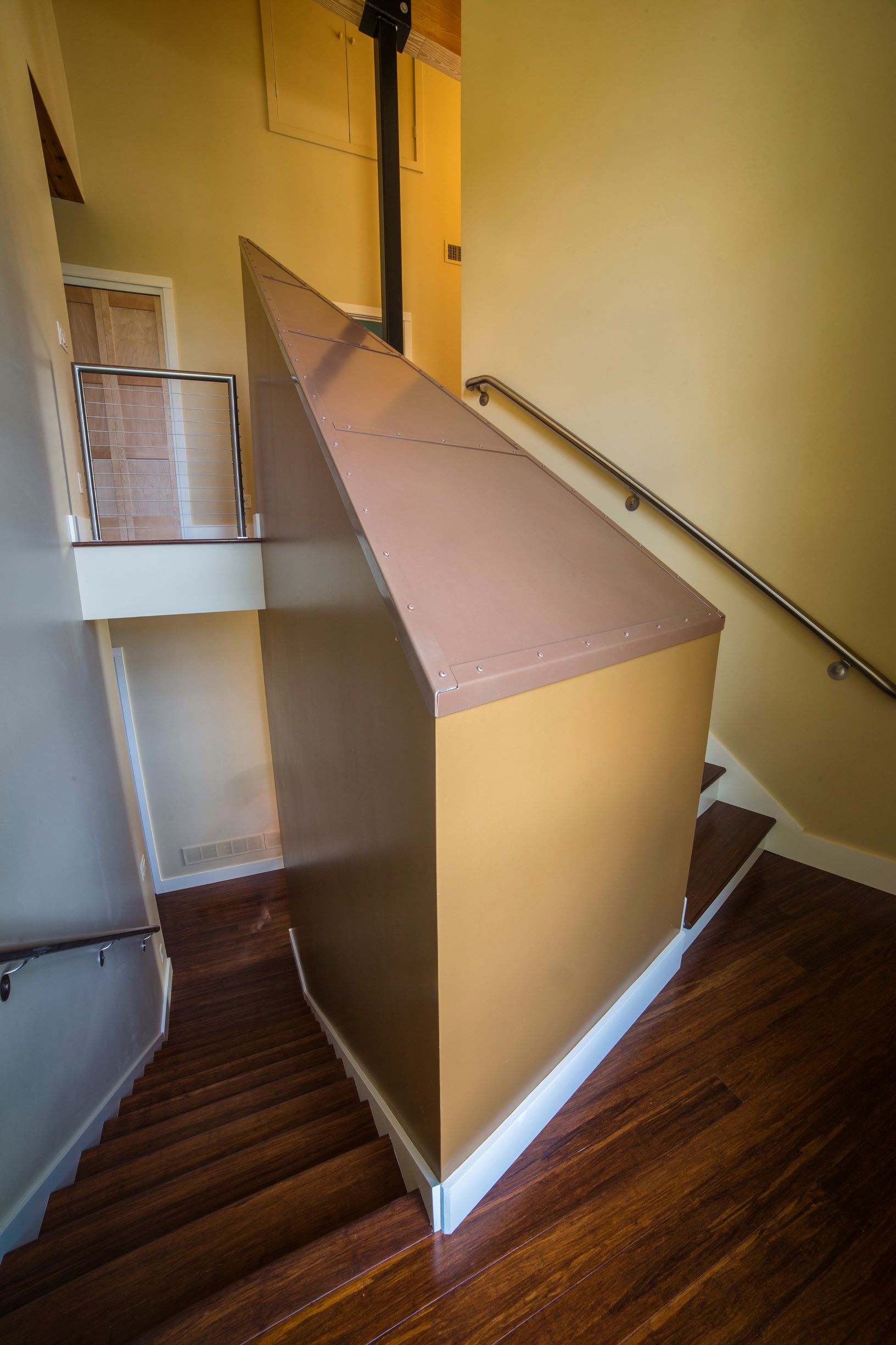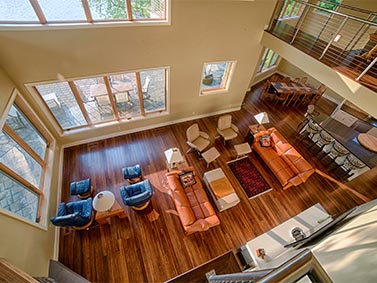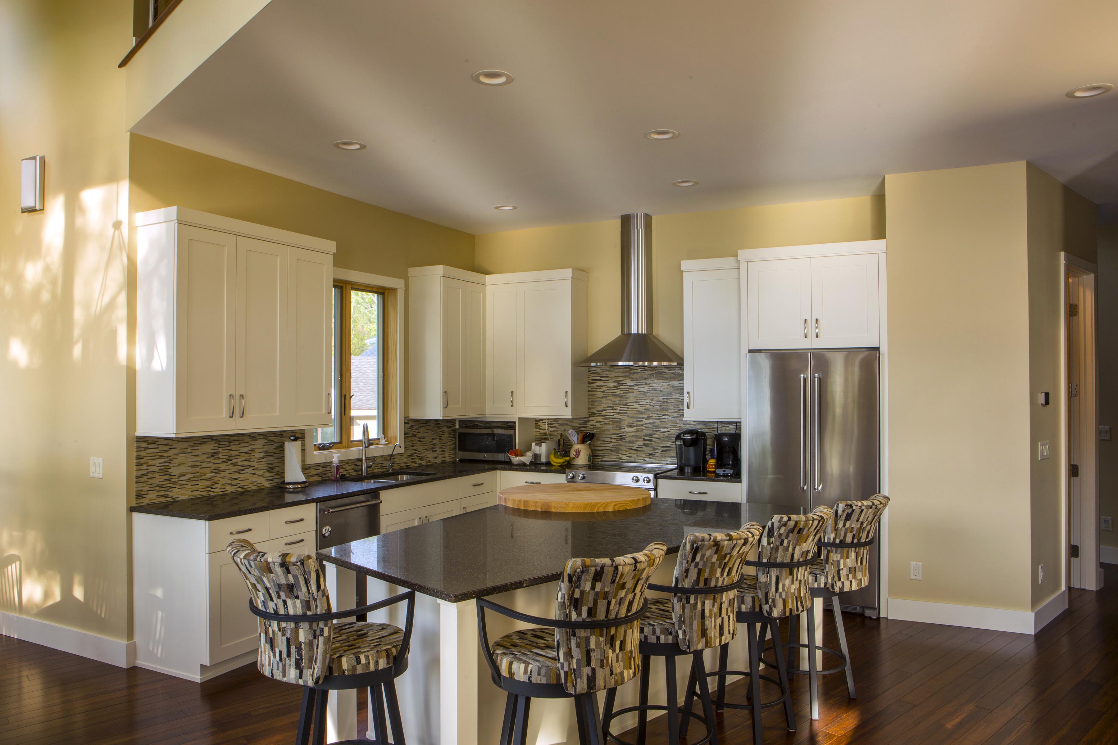 The interior at the Birch haven residence is full of healthy and sustainable materials. Of course we followed the durability management criteria in LEED for Homes by providing durable and long lasting materials, (such as tile floors in wet areas). We also used the low VOC criteria of the LEED commercial standards for paints, stains, adhesives, and sealants to provide a healthy, toxin free indoor environmental quality. There is no carpet to be found anywhere.