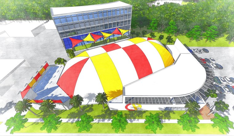 The program for the 20-year master plan includes 3,000 square feet of concessions, restrooms, storage, and HVAC & fire sprinklers for the existing tent, as well as 8,500 square feet of dressing rooms and warm up space, 37,000 square feet of training space for the performers and students and office space, and 3,000 square feet of lobby with ticket sales, restroom, giftshop, and a museum for the visitors. The master plan addition is designed to be built around the existing 25,000 square foot tent and replace the trailers that are currently being used as offices.