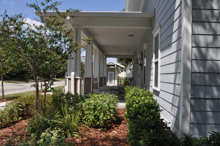 The Janie Gardens Community Center provides community service functions for residents of the new “Janie’s Gardens” Housing development. The Sarasota Housing Authority is redeveloping the existing Janie Poe community as a multi-phase project. Partners on the project include Torti Galas and Partners of Washington D.C., Michael’s Development Company (MDC), and civil engineering services provided by King Engineering. Phase 1 of the redevelopment includes 87 new multi family living units and a new Community Center. The Community Center contains offices, a multipurpose room, computer labs, a media center, maintenance garage, and a fitness center. The design incorporates deep porches for community gatherings as well as informal meeting spaces for the residents. The east side faces out on to an extensive green space that includes a children’s play area and picnic facilities. The Community Center features high efficient HVAC, solar hot water production, the use of gray water for toilet flushing, insulated and shaded glass, and clerestory windows on the north facade for natural day lighting.