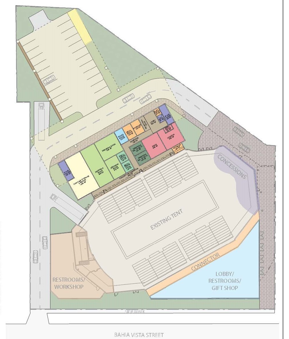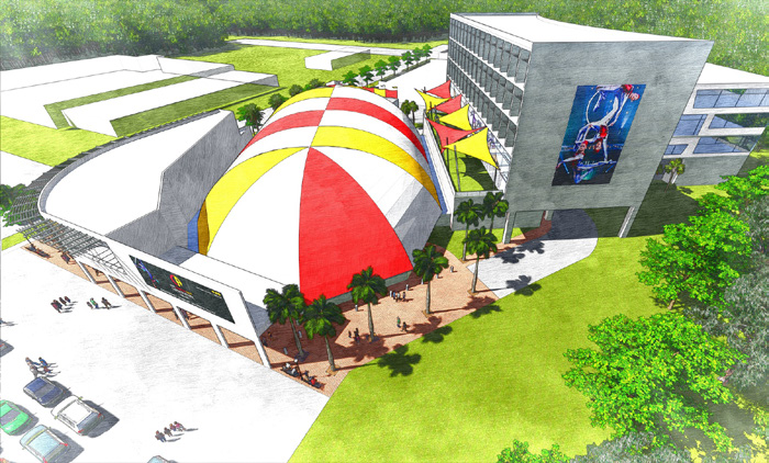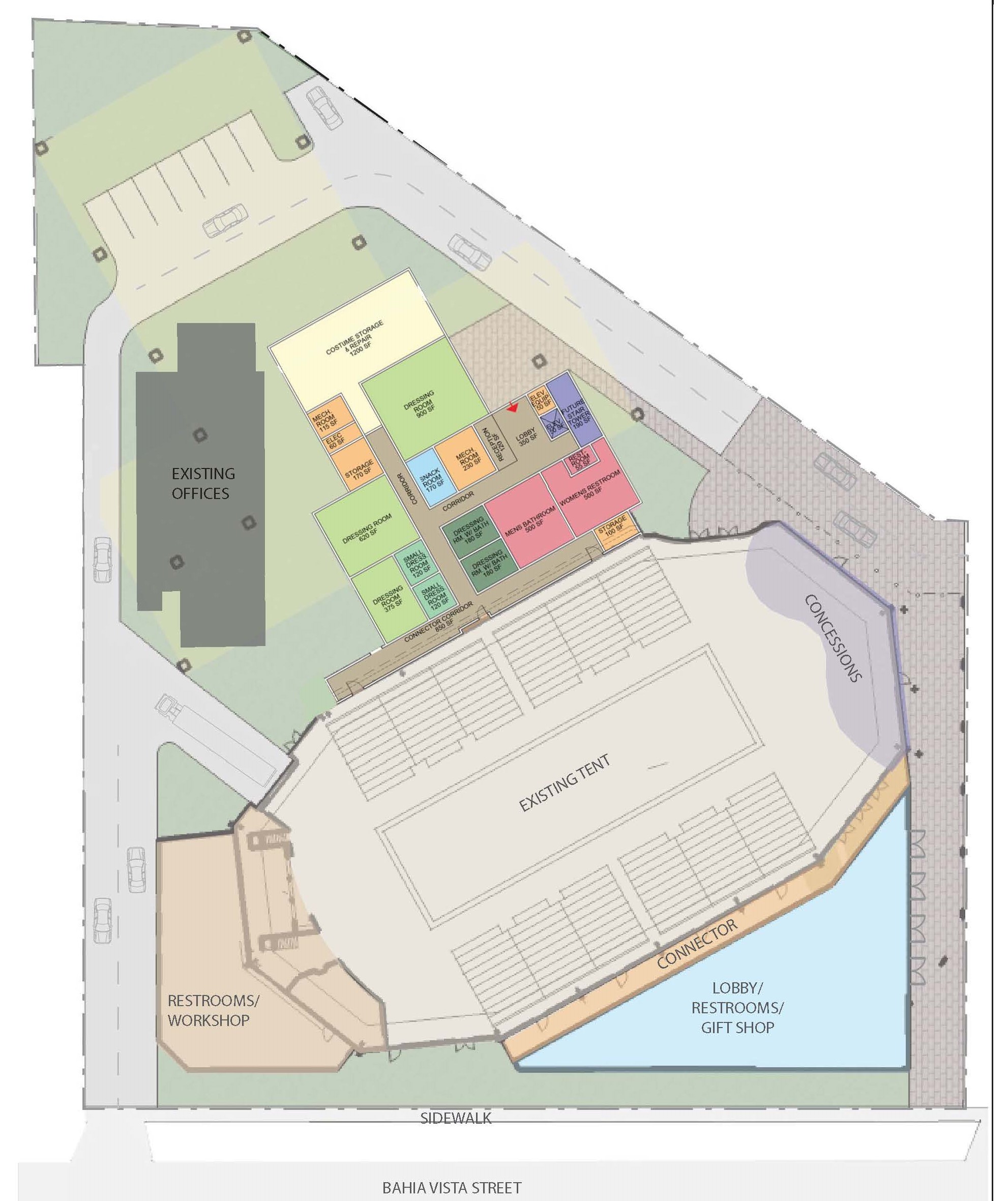 The program for the 20-year master plan includes 3,000 square feet of concessions, restrooms, storage, and HVAC & fire sprinklers for the existing tent, as well as 8,500 square feet of dressing rooms and warm up space, 37,000 square feet of training space for the performers and students and office space, and 3,000 square feet of lobby with ticket sales, restroom, giftshop, and a museum for the visitors. The master plan addition is designed to be built around the existing 25,000 square foot tent and replace the trailers that are currently being used as offices.