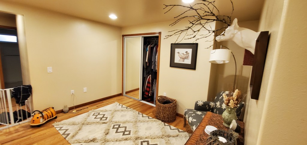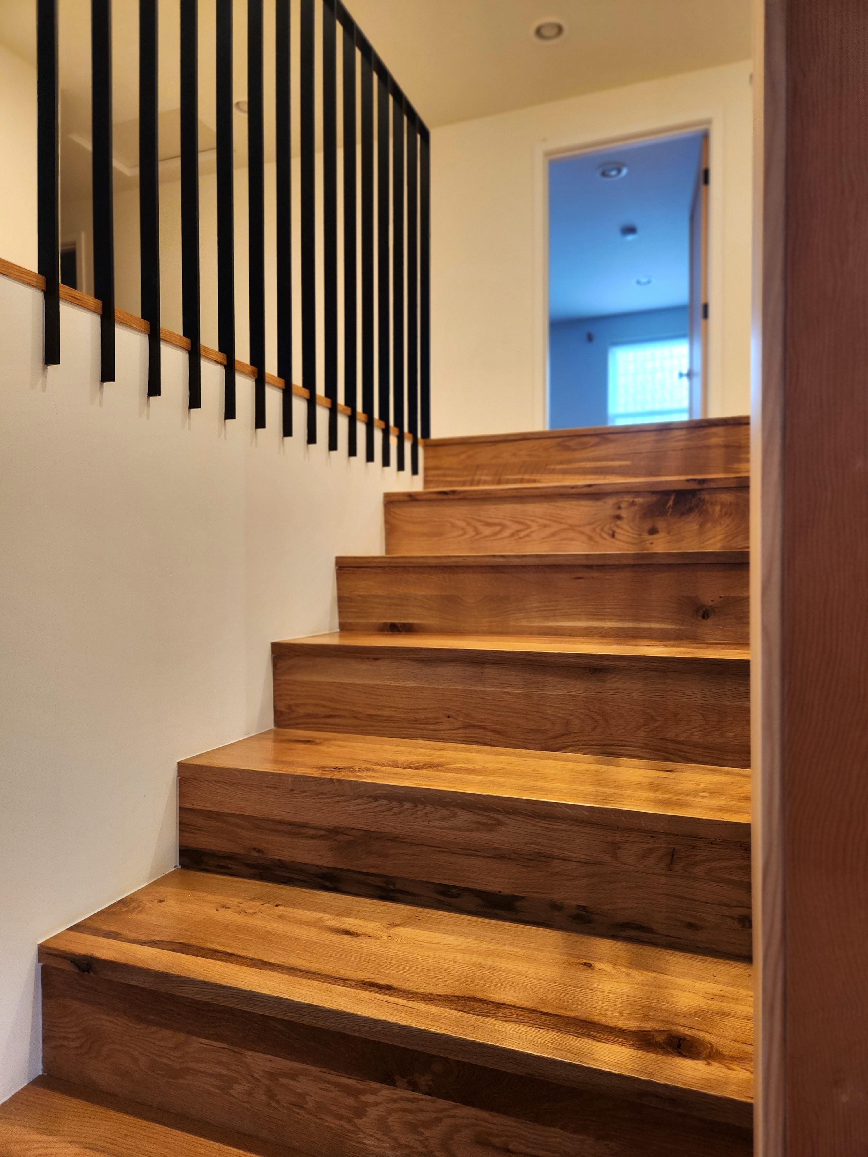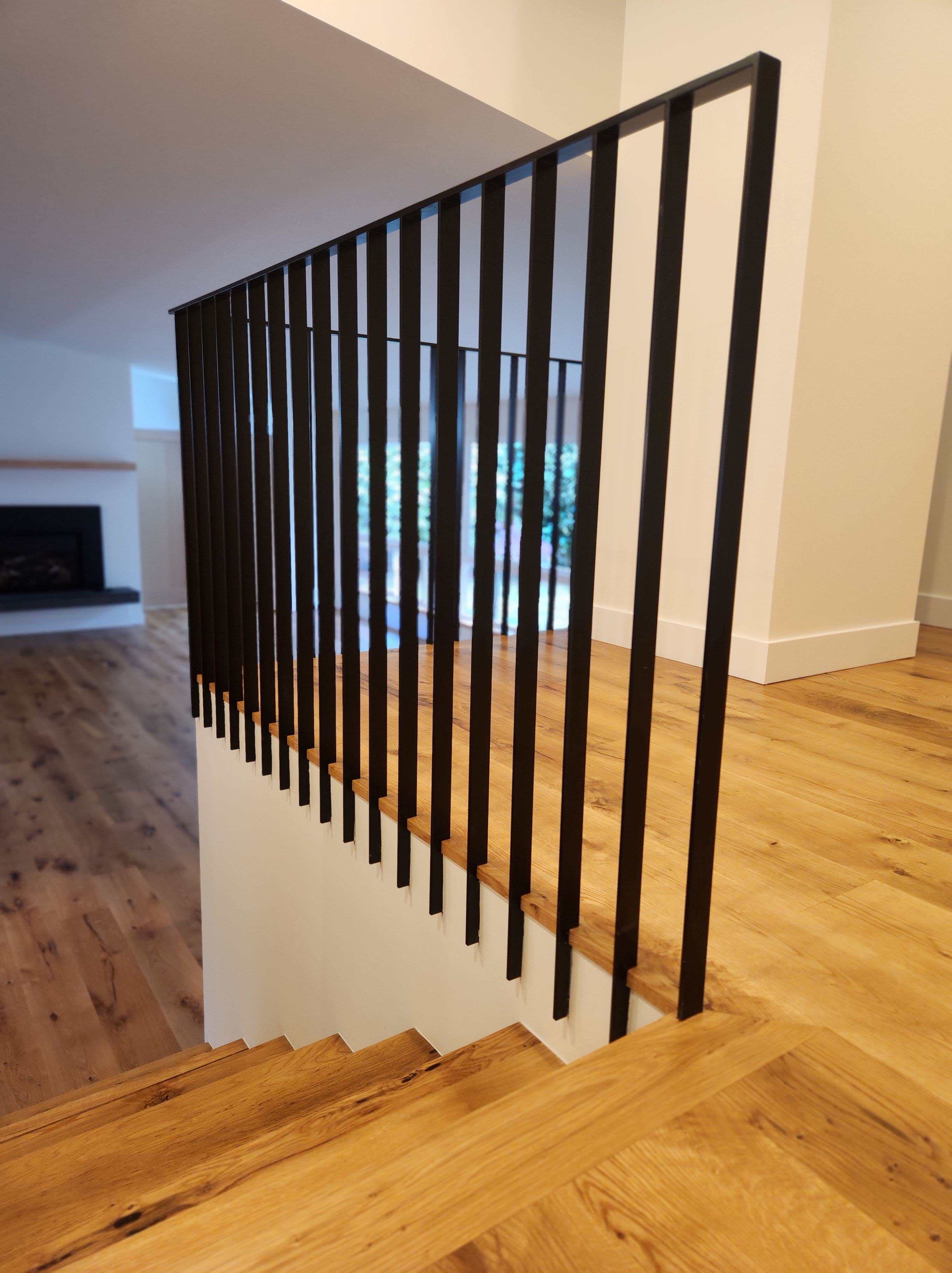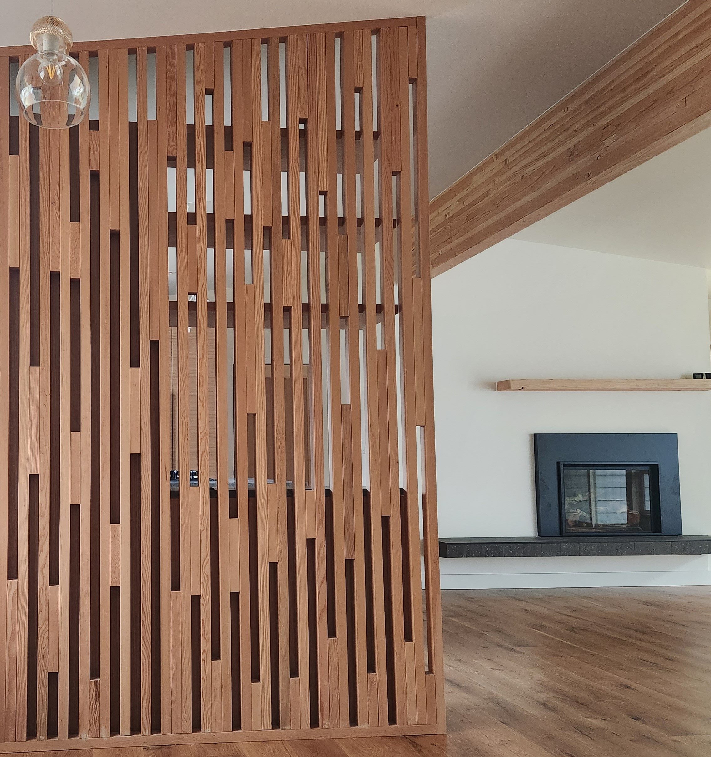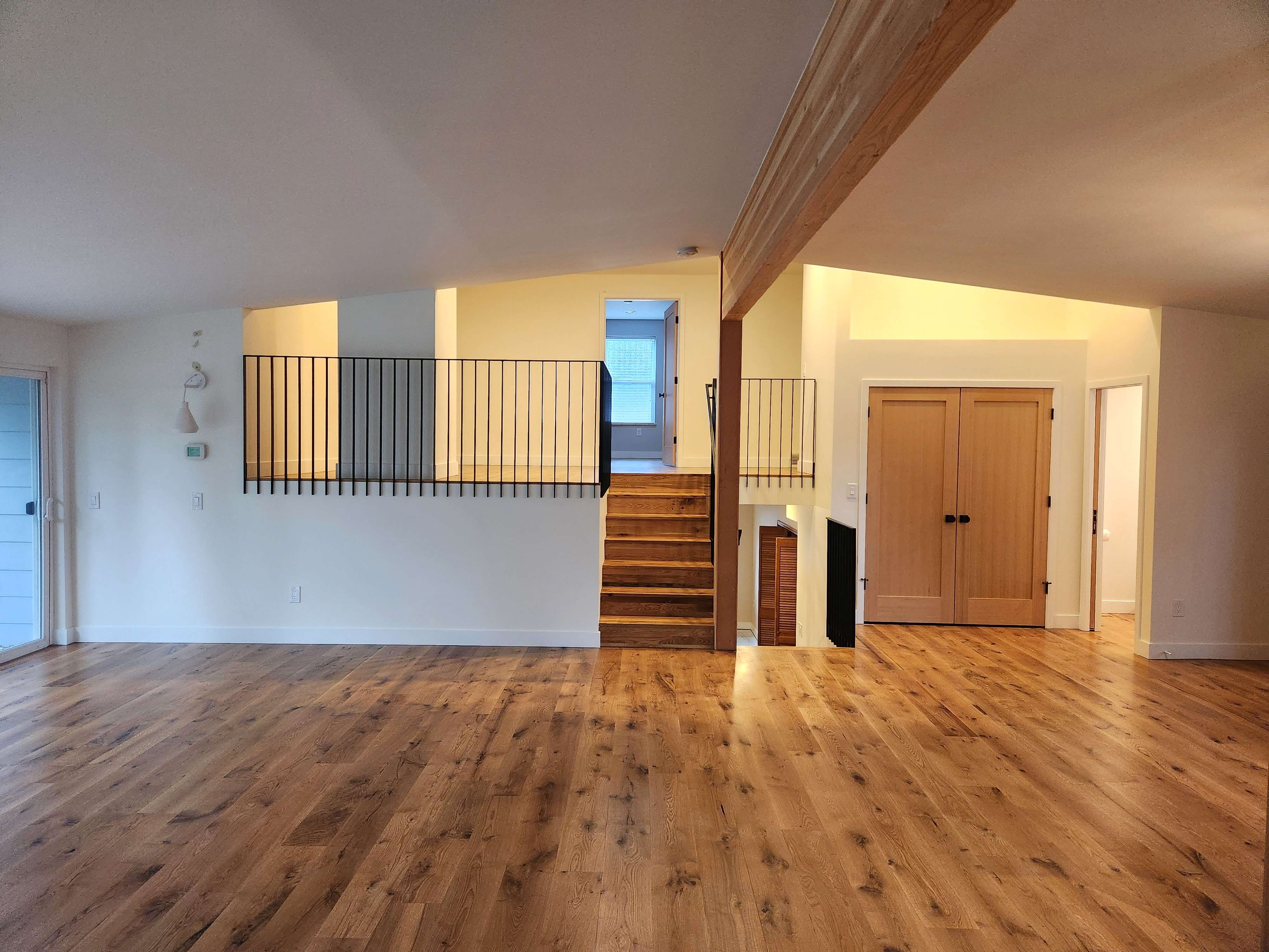 Connecting the upper level bedrooms to the main living space. It is hard to imagine this is the same view before/after. A key element of the design is to connect the upper level of the split level plan to the main living level below.