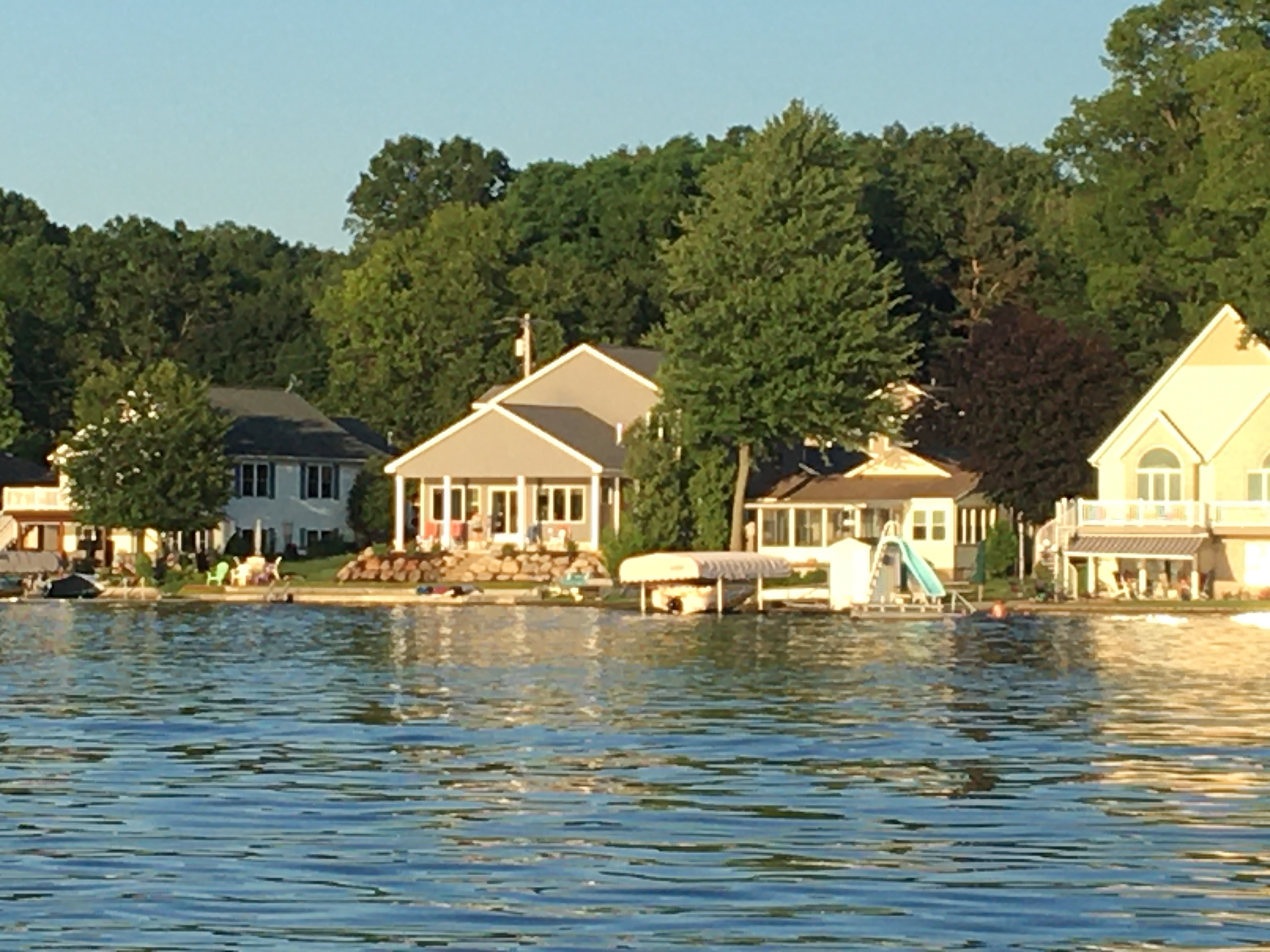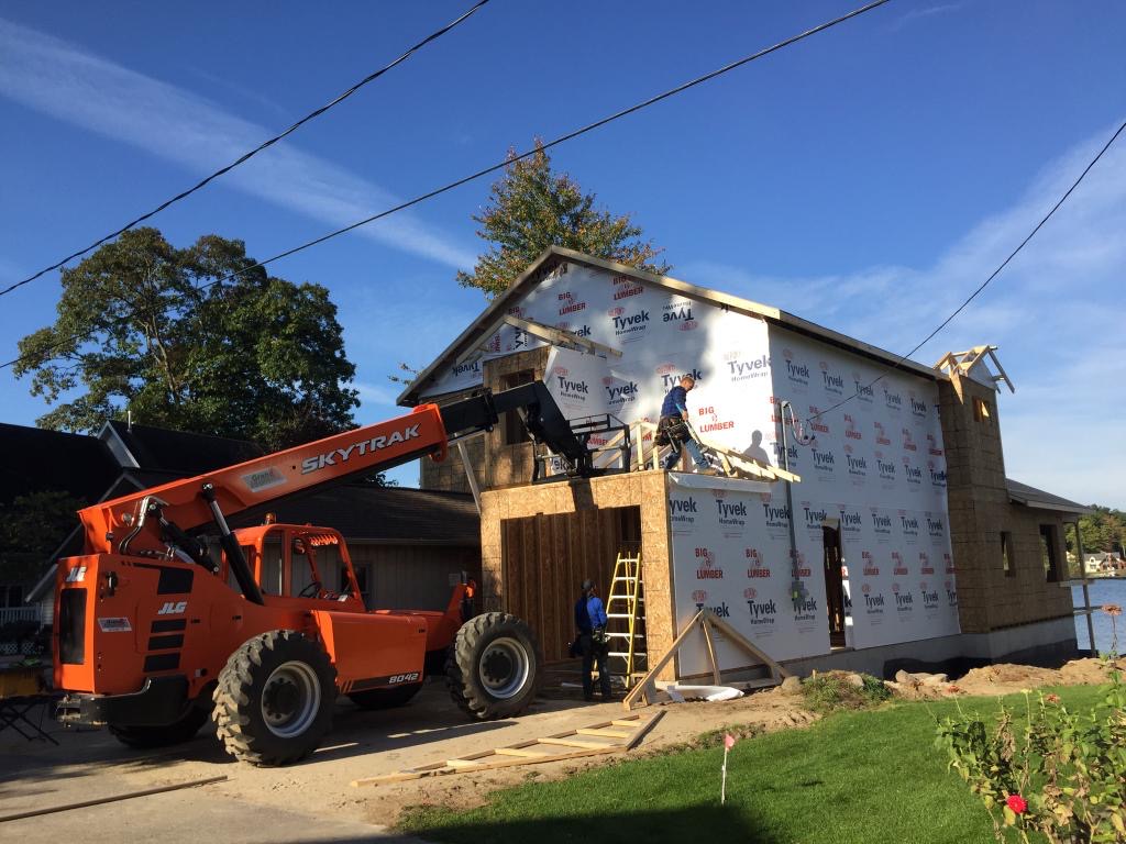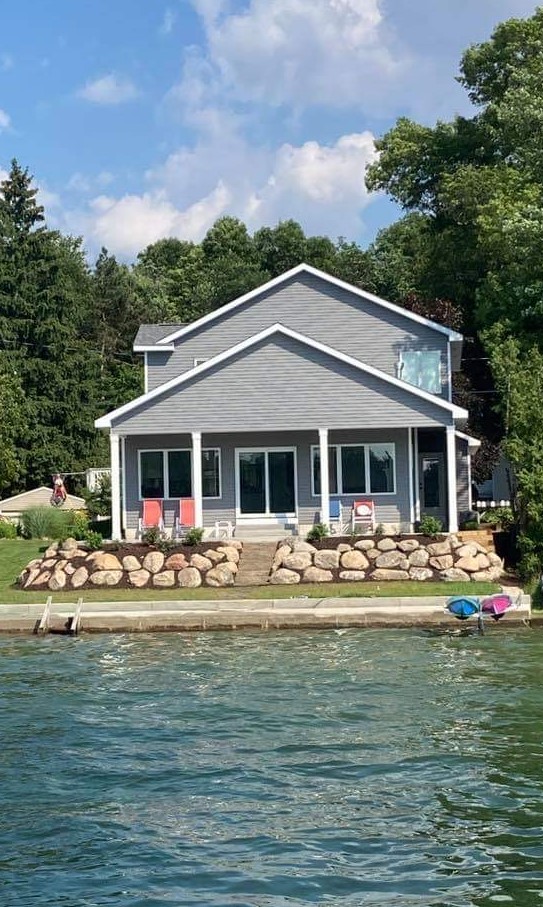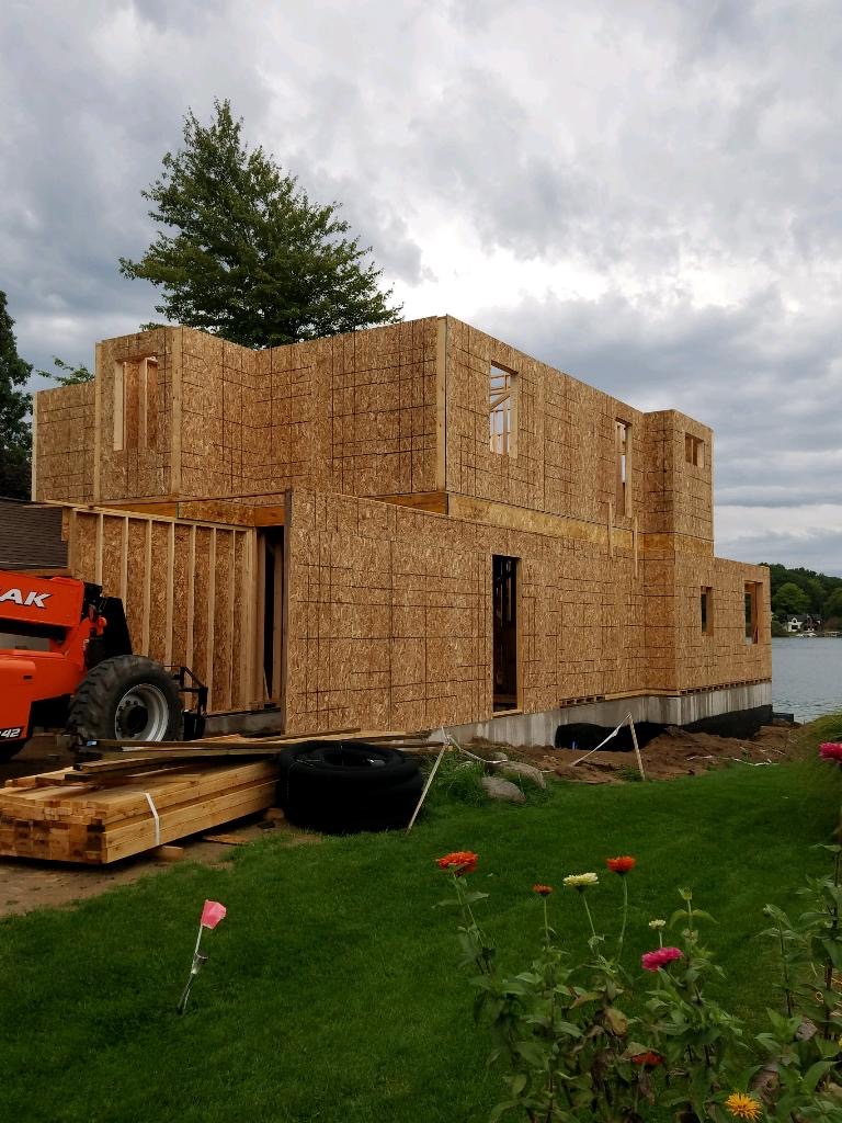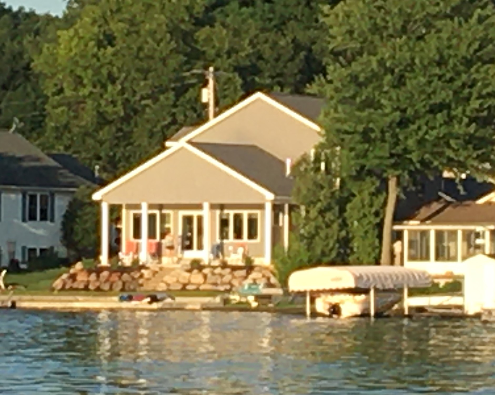 This lakefront home, is located in Southwest Michigan (Climate Zone 5) and consists of 2,400 SF interior conditioned space, plus 575 SF garages for 2,975 SF of total area. The lot is an old lot platted in the 1950’s and is long and narrow, being a bit pie shaped with its wide end being on the water. The home was constrained by the side yard setbacks. The design focuses on the 210 degrees of panoramic views of the water. The Program includes