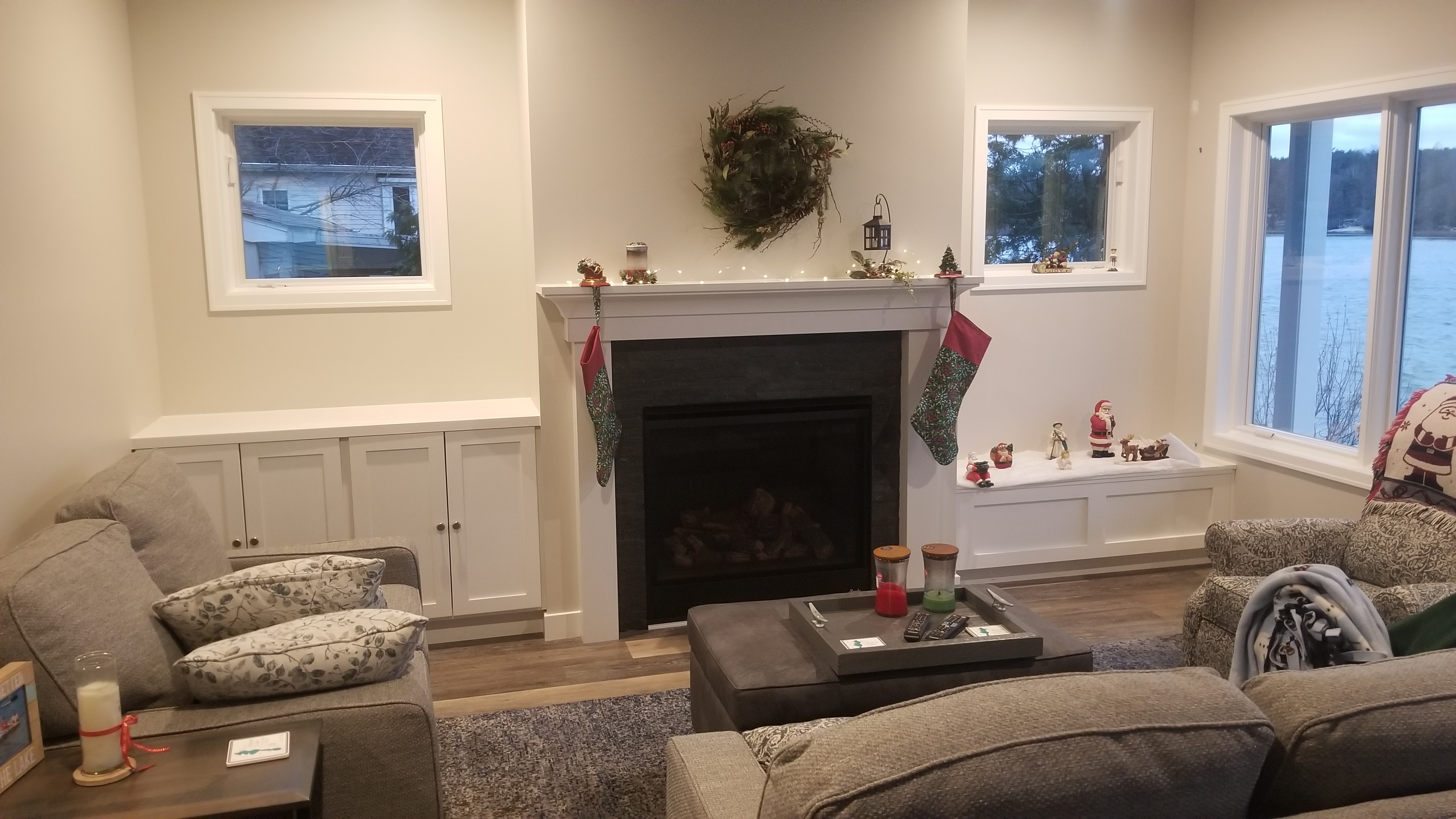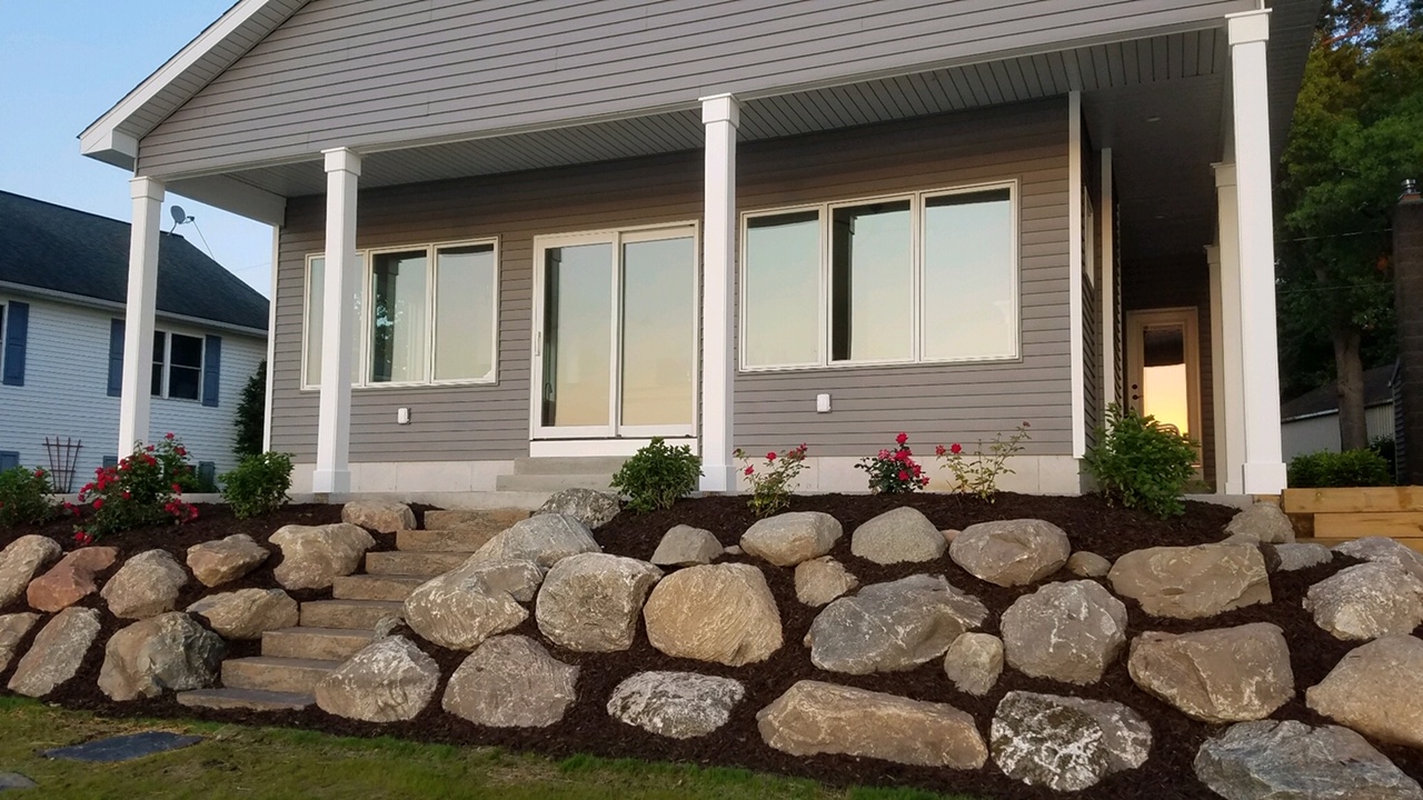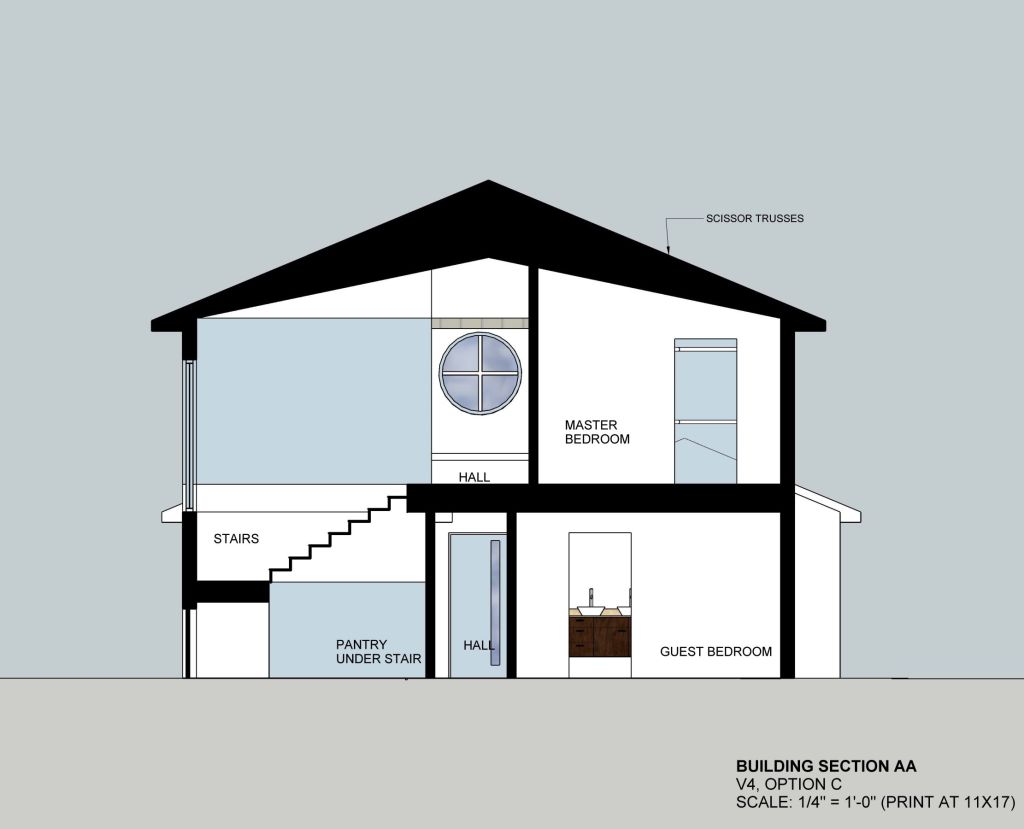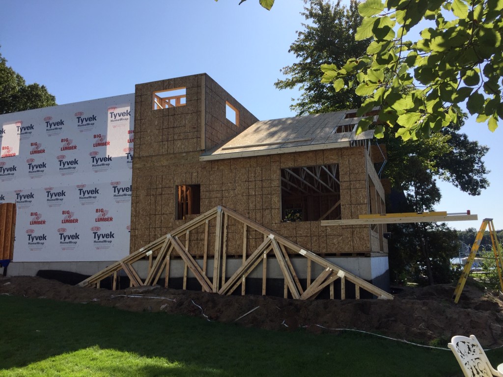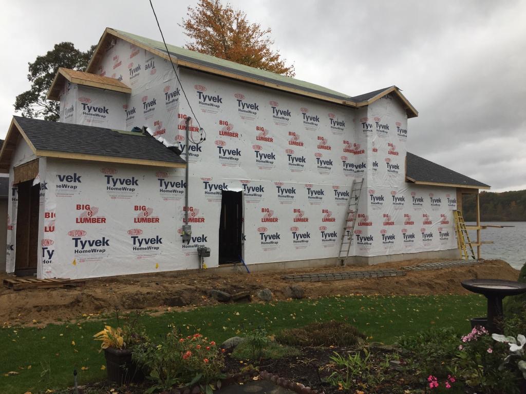 This lakefront home, is located in Southwest Michigan (Climate Zone 5) and consists of 2,400 SF interior conditioned space, plus 575 SF garages for 2,975 SF of total area. The lot is an old lot platted in the 1950’s and is long and narrow, being a bit pie shaped with its wide end being on the water. The home was constrained by the side yard setbacks. The design focuses on the 210 degrees of panoramic views of the water. The Program includes