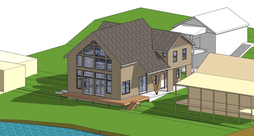 Currently in design, this new lakefront home in Michigan is starting construction in 2024. It is a 3 bedroom 2.5 bath home featuring a great room with loft to capture the beautiful lake views.