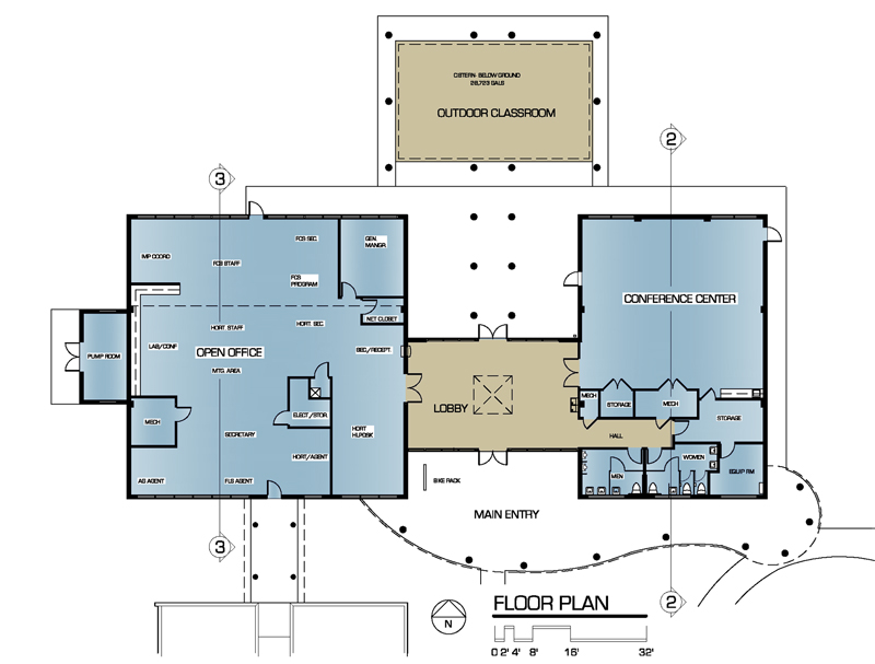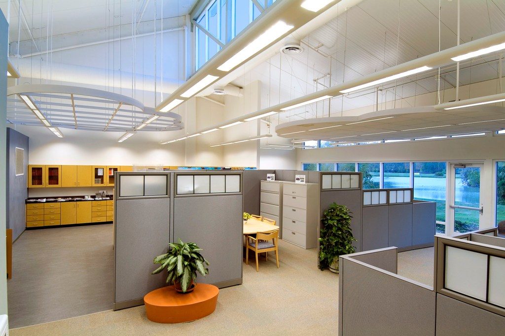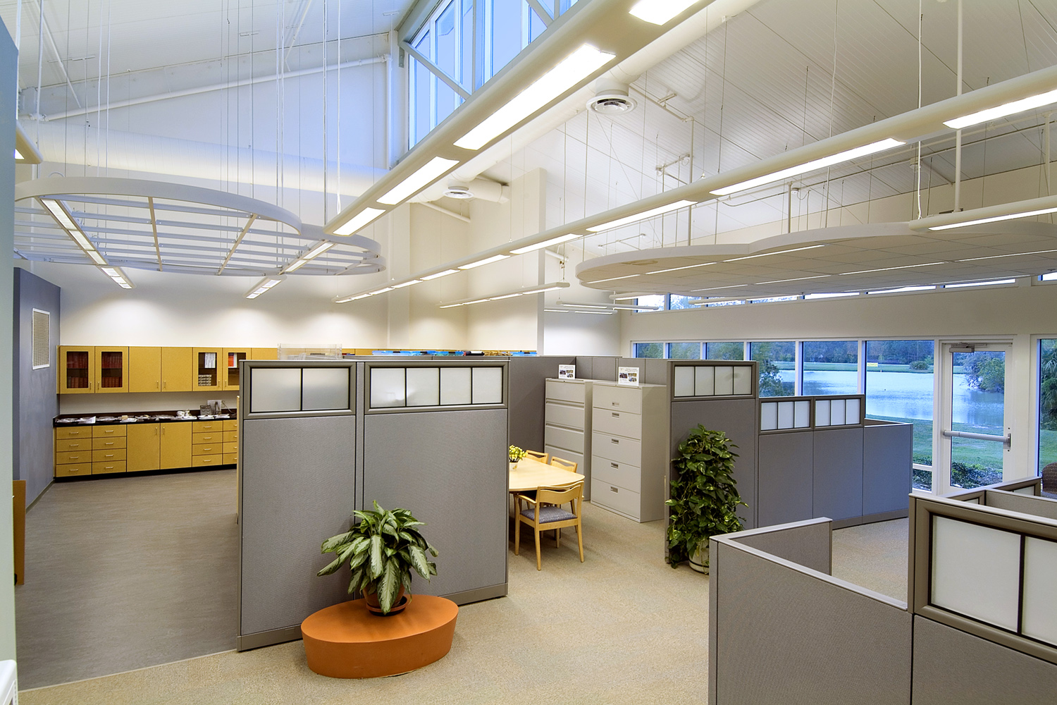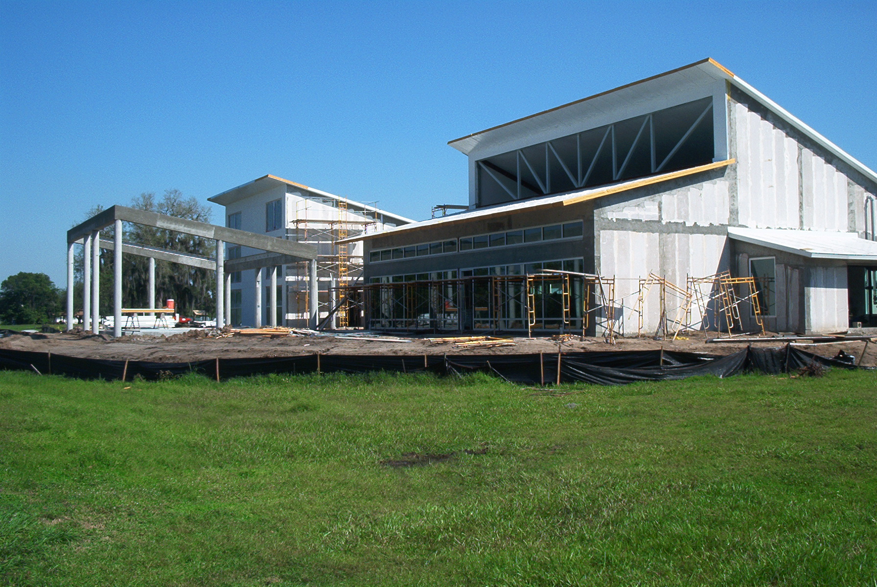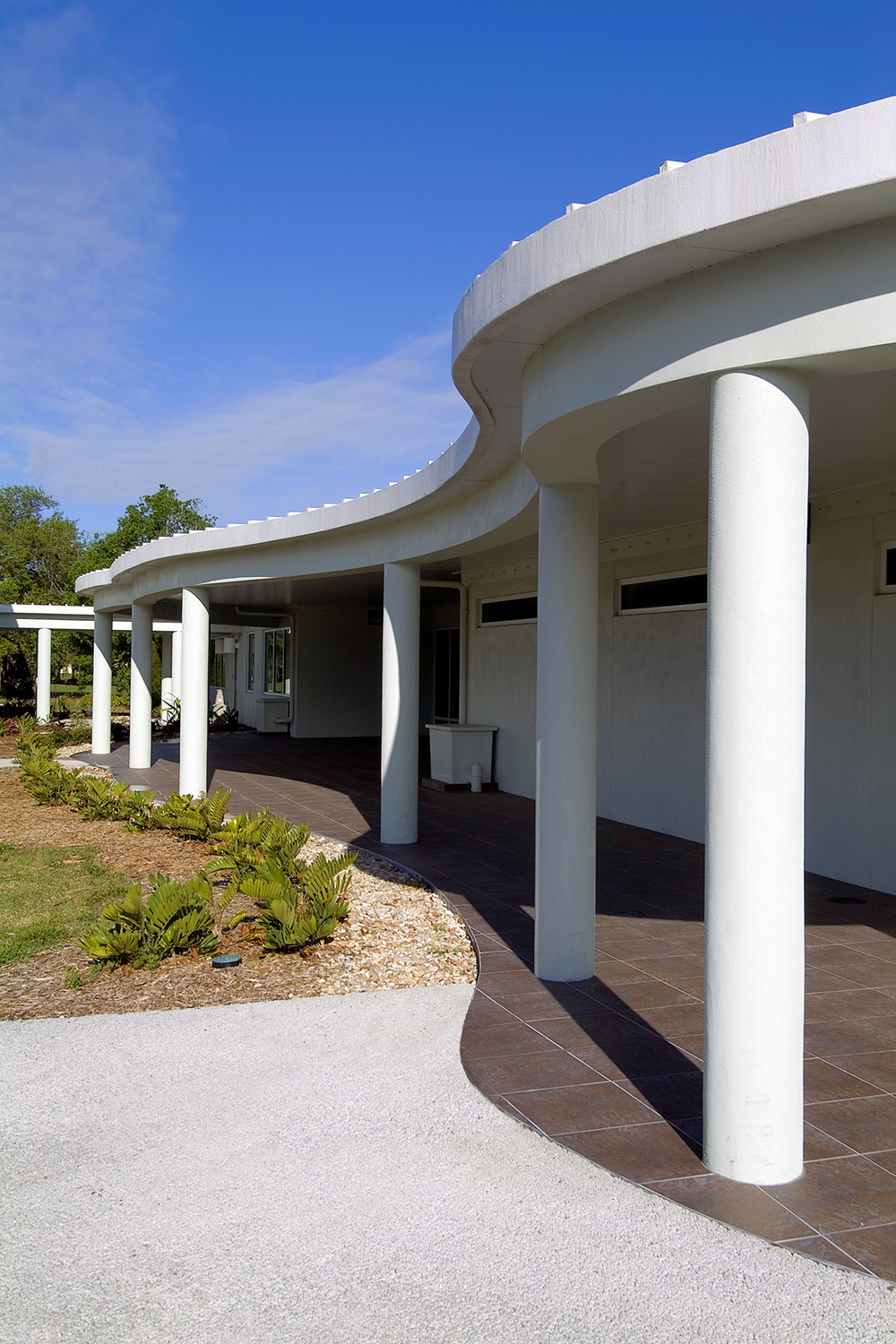 The Twin Lakes Park Office complex is a LEED NC Gold Certified Building designed for the Sarasota County Government and was the highest scoring LEED NC v2.0 Building in Florida until 2009. The facility won the 2003 SUSTAINABLE FLORIDA / FLORIDA AMERICAN INSTITUTE OF ARCHITECTS AWARD OF MERIT. The project demonstrates energy conservation by using 45% less energy than a new, code compliant building. This is accomplished through sustainable features such as the use of natural daylight, sophisticated lighting control systems, a building energy management system and a high performance building envelope. The Twin Lakes project demonstrates water conservation by using 58% less water than a new, code compliant building. Water conservation features include low fl ow fixtures, water-less urinals and a 28,000 gallon cistern. The project saves energy resources through the use of a geothermal cooling system and a roof mounted 10 KW photo voltaic (PV) array.